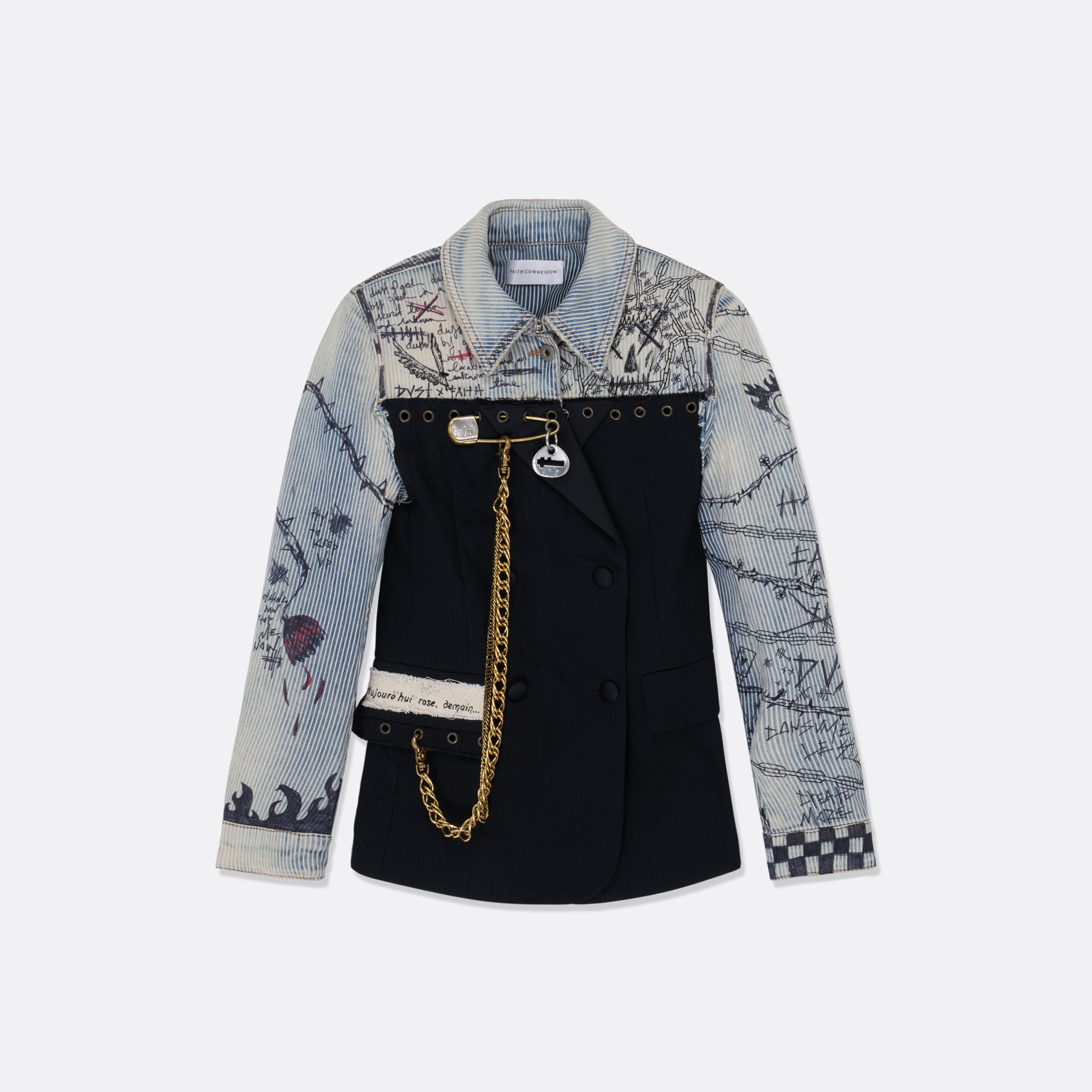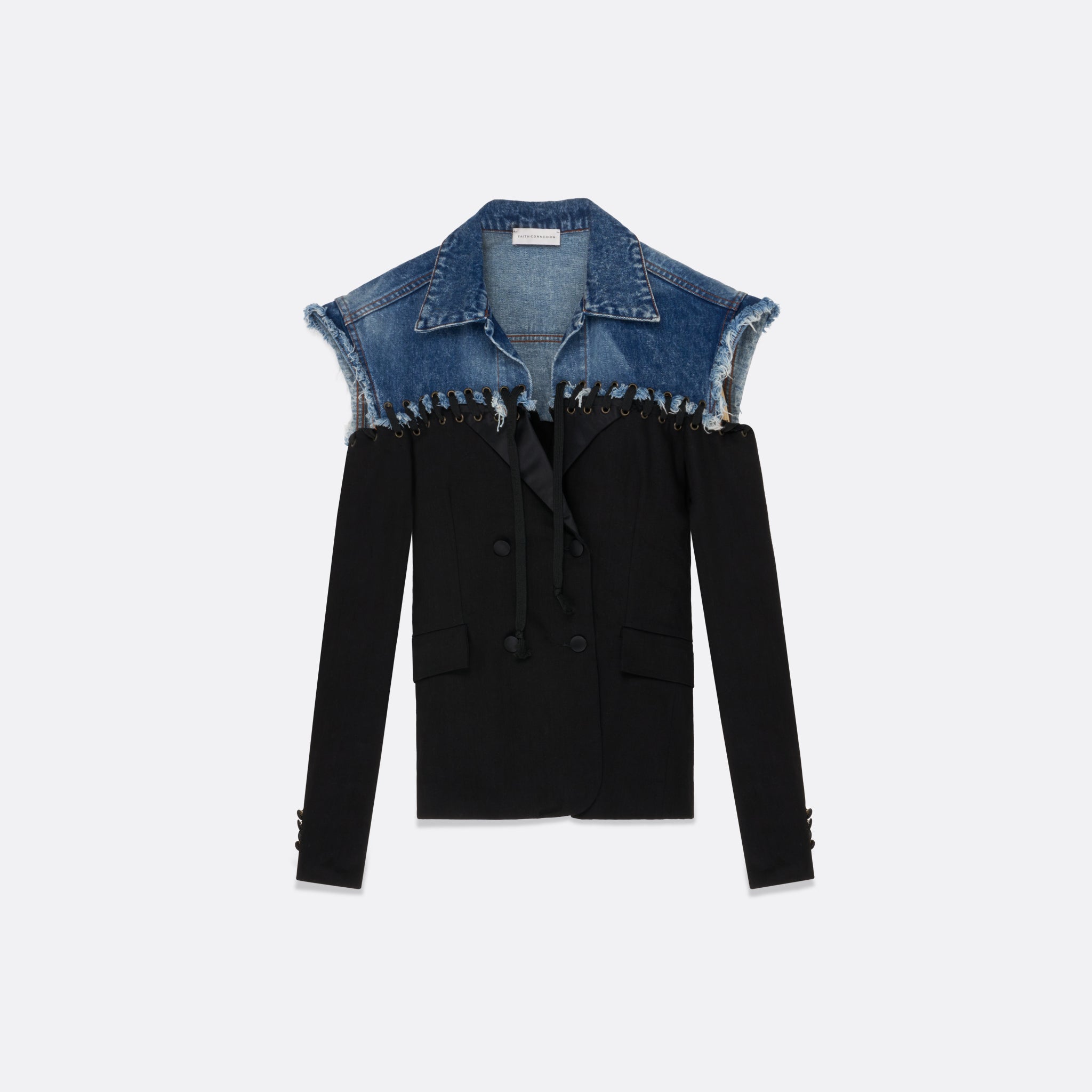 UPCYCLED MIXED DENIM AND TWEED JACKET