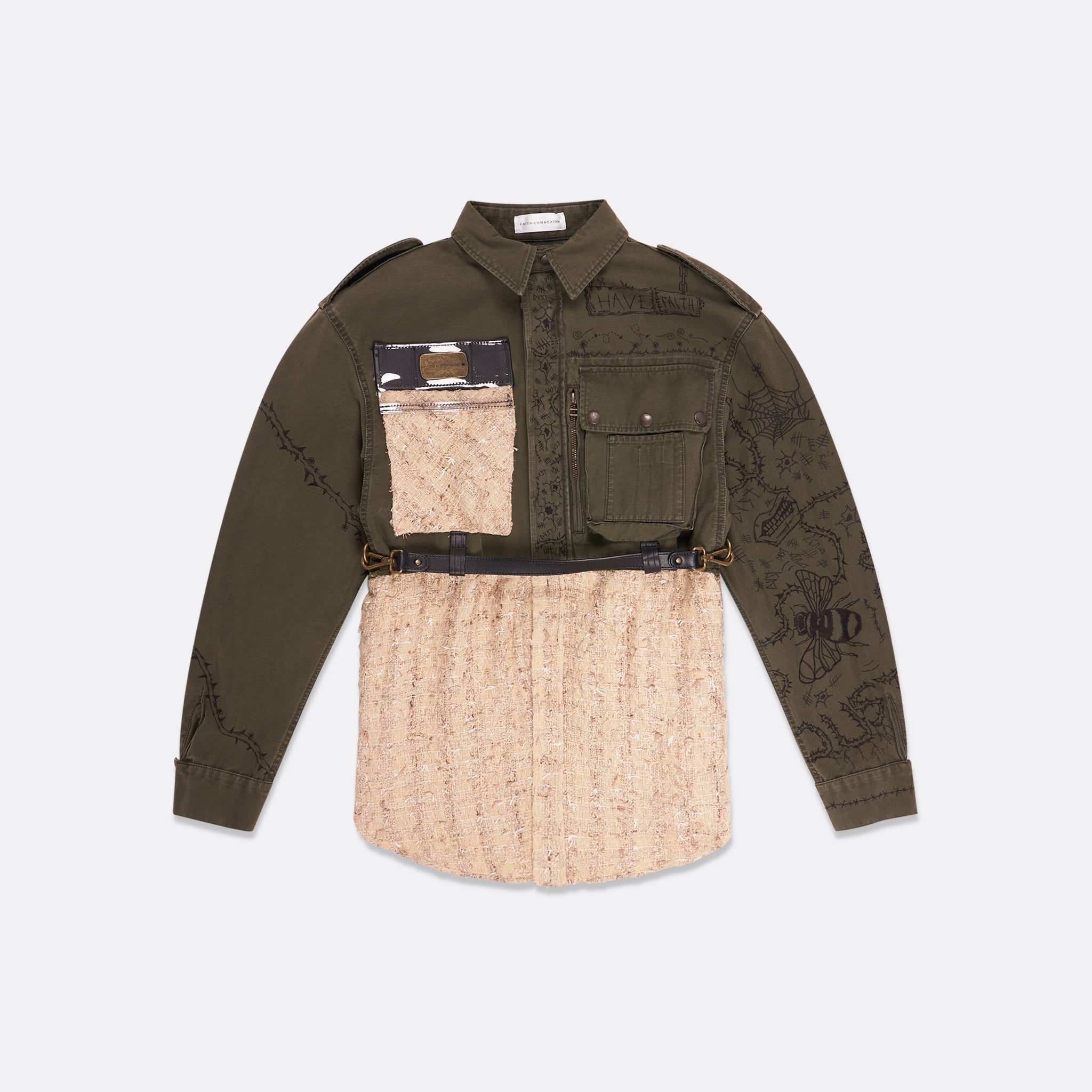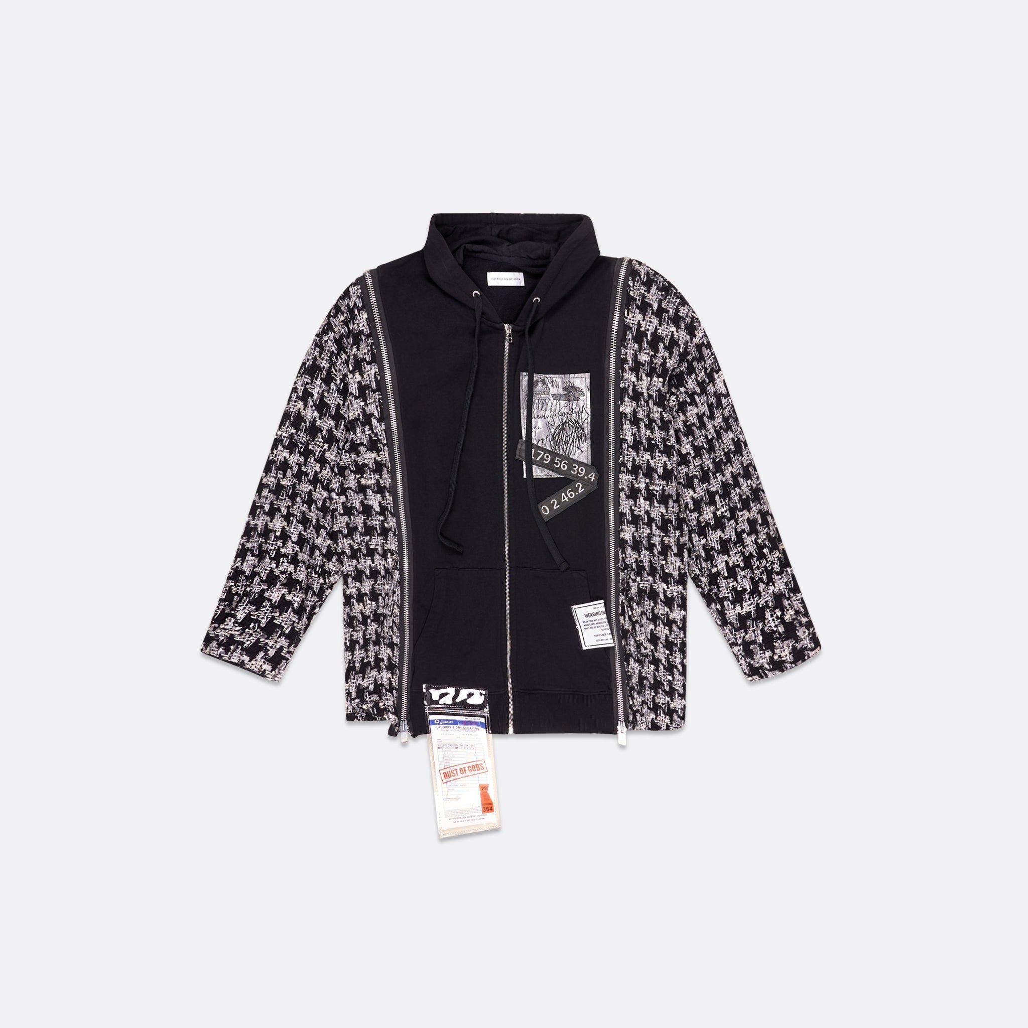 UPCYCLED MIX OF COTTON HOODIE WITH TWEED SHIRT