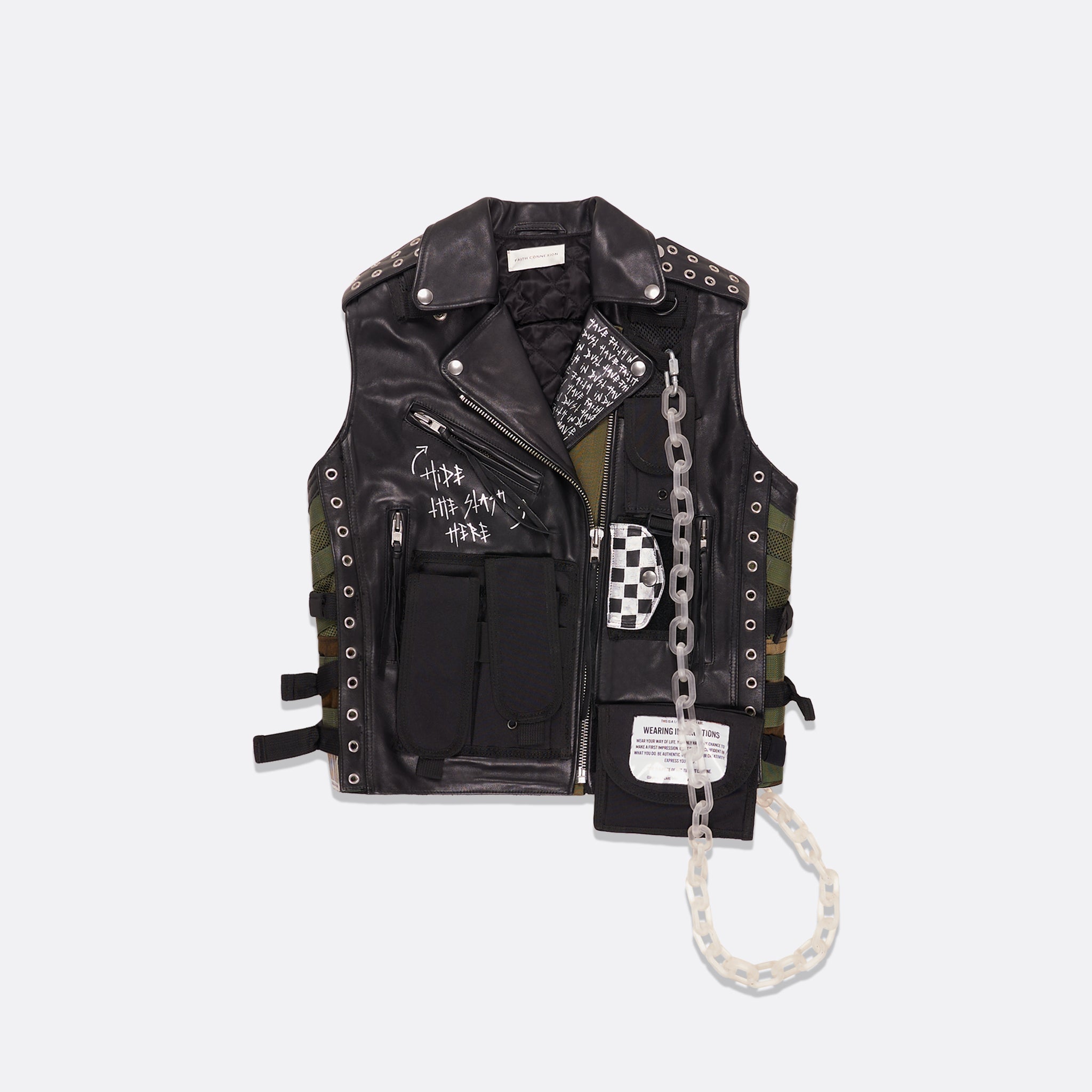 UPCYCLED LEATHER SLEEVELESS JACKET