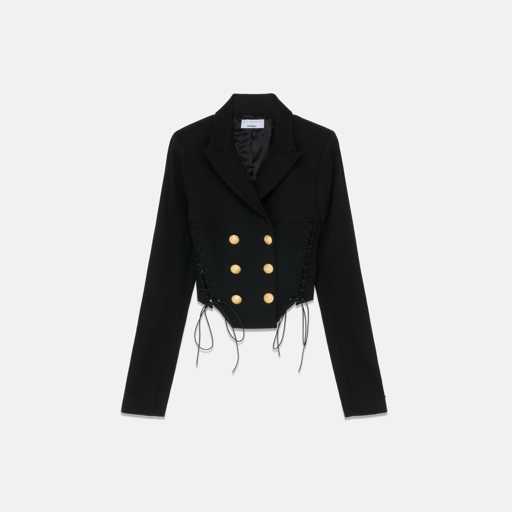 DOUBLE BREASTED LACED BLAZER WITH BIJOU BUTTONS