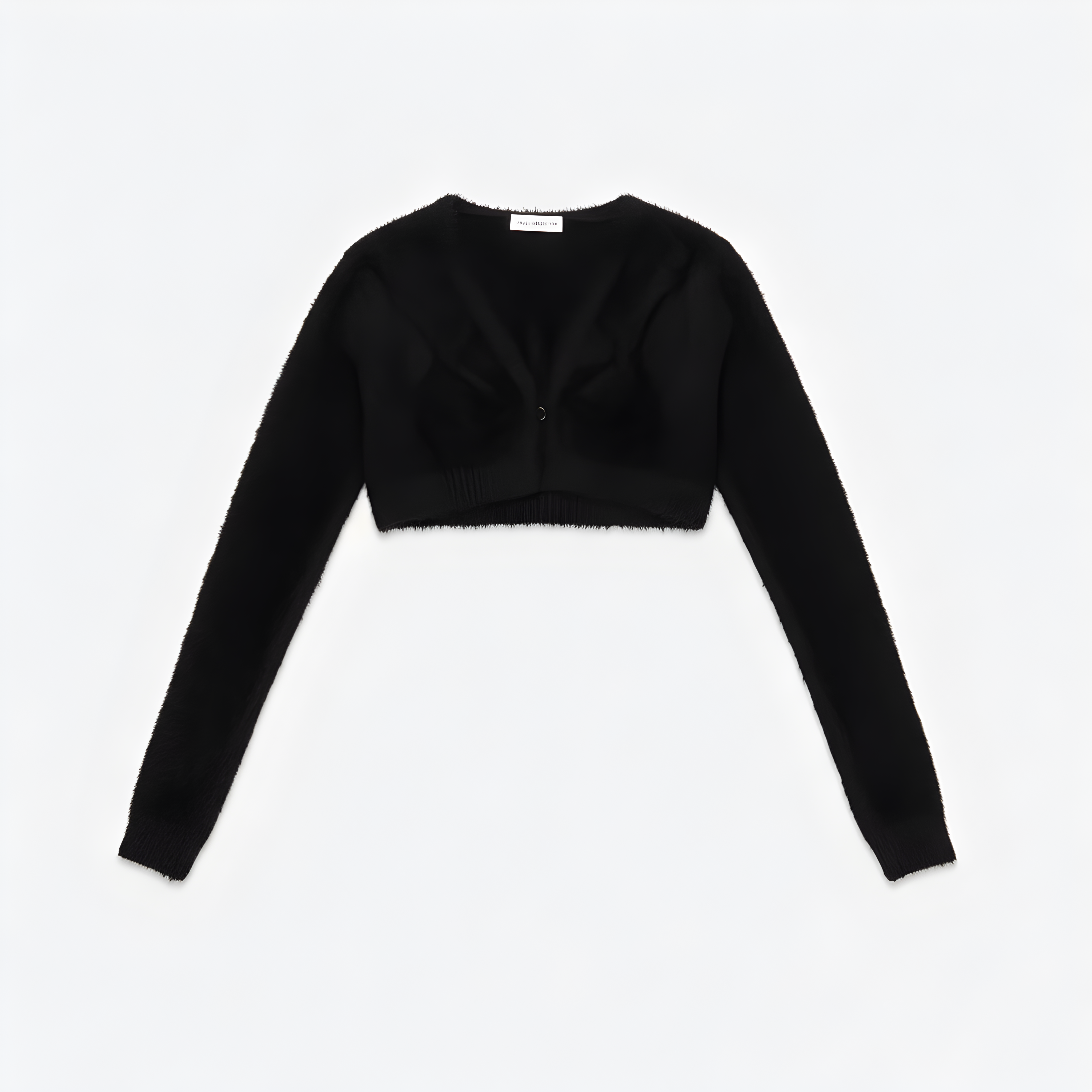 KNITTED HIGH COLLAR CROPPED CARDIGAN