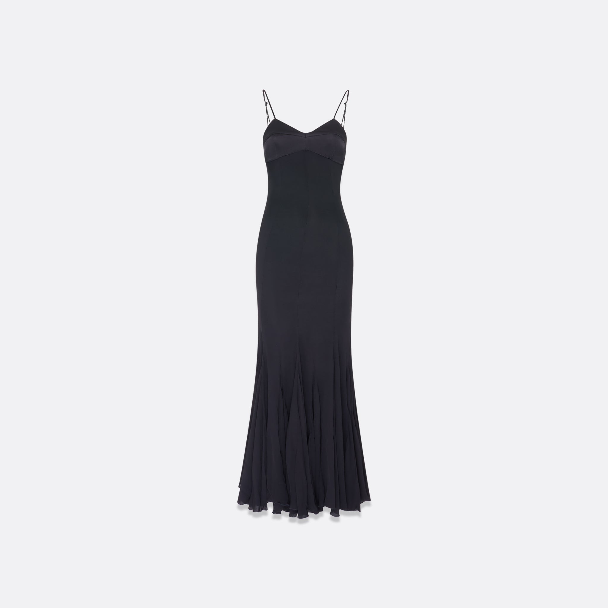 This women's keel dress features a fitted silhouette, spaghetti straps, and a flared hem. Elegant and perfect for special occasions.