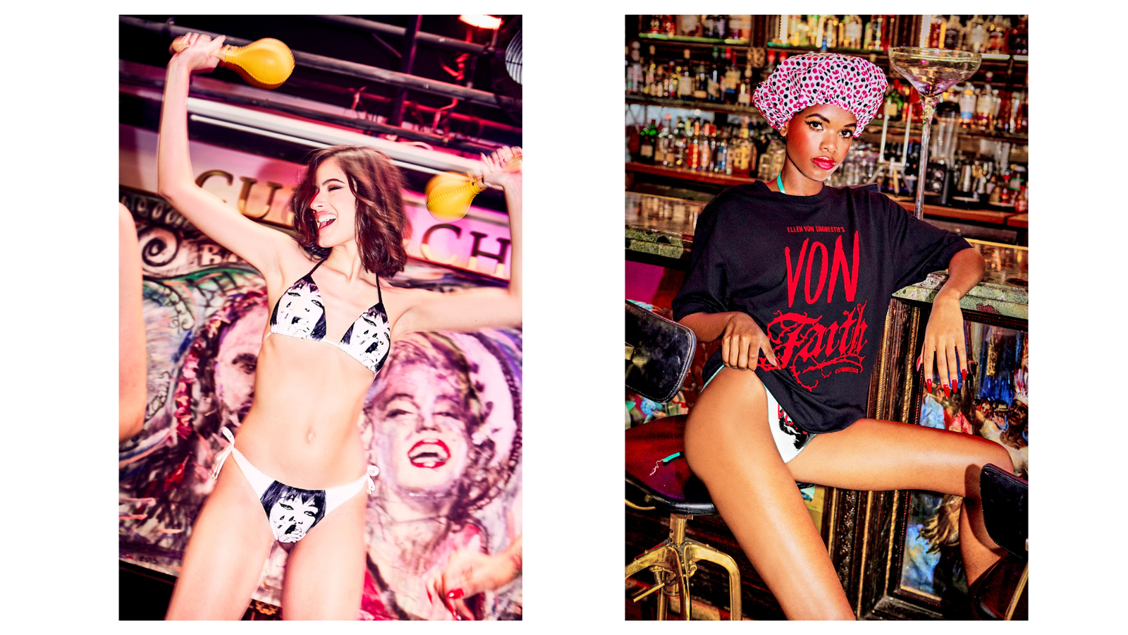 Ellen Von Unwerth’s Von Magazine x Faith Connexion in a bold, rebellious capsule that turns iconic images into daring collections. The capsule showcases a curation of the magazine's most unforgettable moments : the glamorous “Hollywood Premiere” from Cinema Issue, the darkly seductive Vonpirella, and the sunny & wild “Rock My Boat” from Cannes Issue.