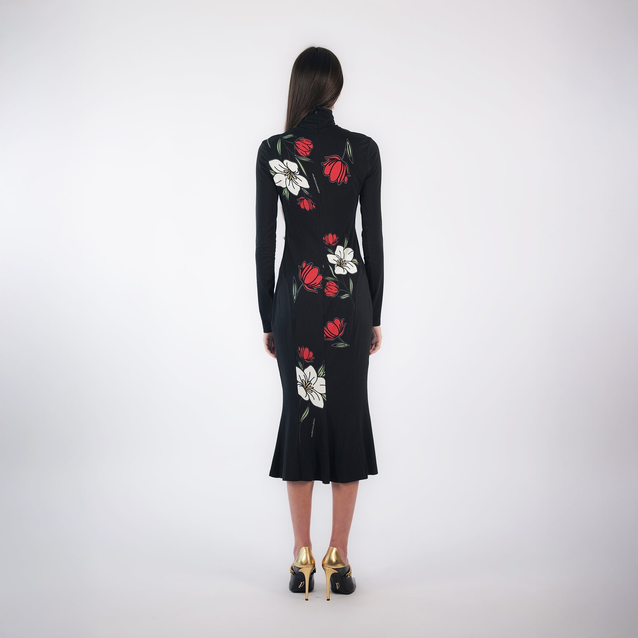 HIGH-NECK FLORAL PRINT BODYCON DRESS | KATE PEREZ